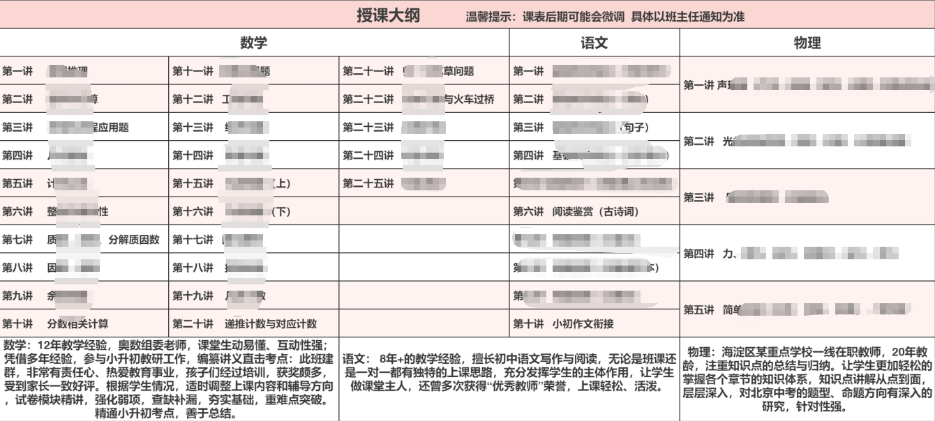 2026年小学早期培养精品班报名中,本次课程直击优质校拔尖人才招生核心,适配人大附中、清华附中、北大附中等名校特殊招生项目,专项设置拔尖提升班型,包含数学、语文、物理等,帮助进入优质校。课程详情如下: