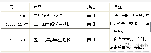 2.二年级至六年级学生于8月31日(周五)返校报到。具体安排如下: