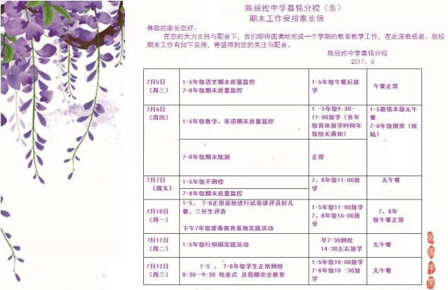 陈经纶中学嘉铭分校(东)2017年期末工作安排相关事宜,北京小升初网分享如下:
