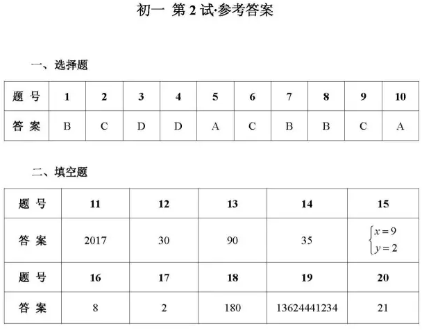 2017第二十八届希望杯二试已于4月9日结束,北京小升初网现将20172017第二十八届希望杯中学七、八、九年级2试答案汇总分享给大家,参加希望杯中学二试的学生可查看核对。