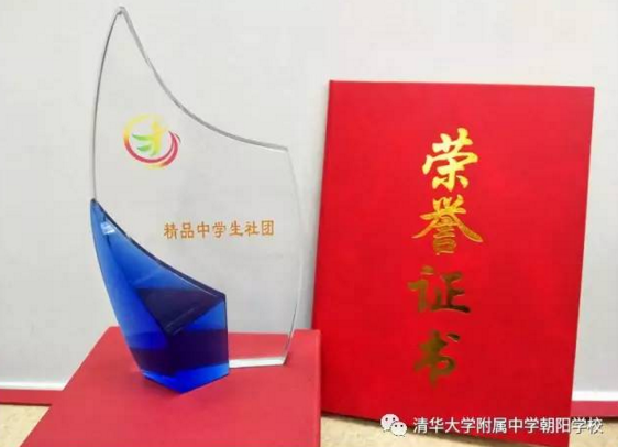 2017北京市朝阳区精品学生社团”称号奖杯和证书