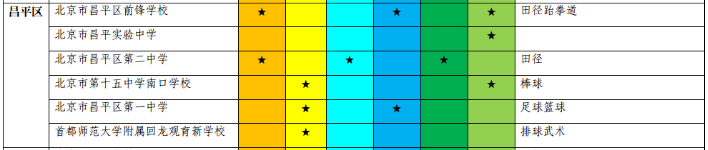 昌平区2018年高级中等学校具有招收体育艺术科技特长生资格学校及招生项目、区域名单: