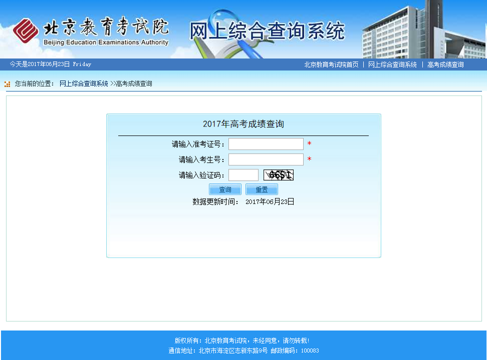 2017年北京高考网上成绩查询入口已经开通,具体网址和查询流程如下: