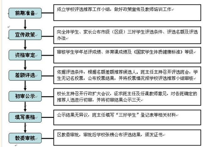 市级“三好学生”的评选工作,限定在小学毕业年级的学生(包含借读学生),评选数量为毕业生总数的5%。连续三年被评选为区级“三好学生”的本市学生和在本市借读的外地学生均有资格参加市级“三好学生”的评选。