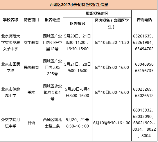 声明:本文内容综合整理自西城区招生考试中心,各学校官网,家长分享,由北京小升初网团队(微信公众号搜索:北京小升初网)排版编辑,如有侵权,请及时联系管理员删除。
