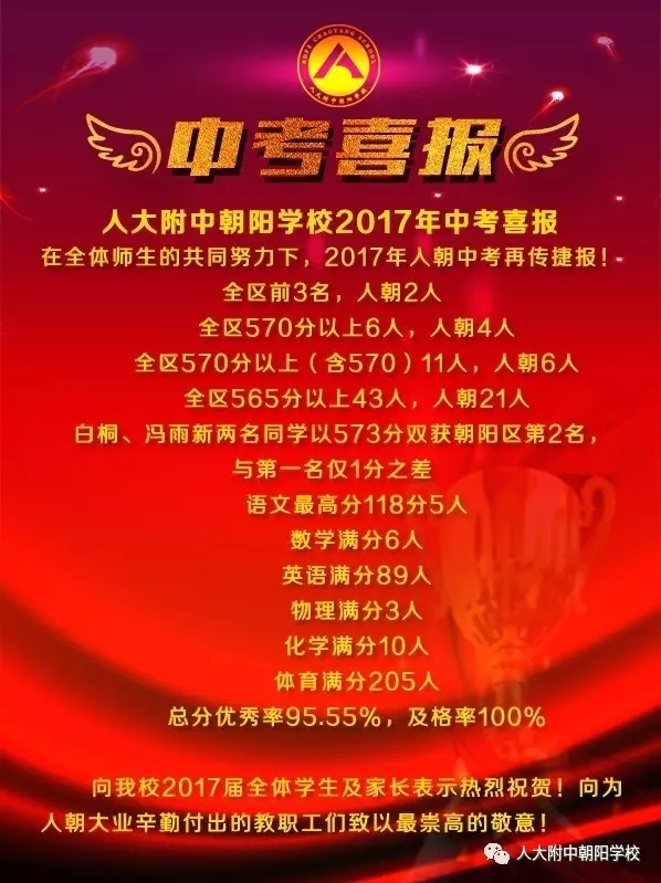 中高考成绩是学校综合实力的重要体现,北京小升初网特分享人大附中朝阳学校在2017年中考、高考取得的成绩,供家长们参考。