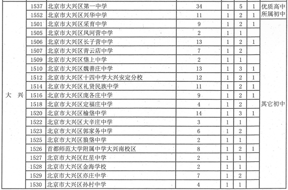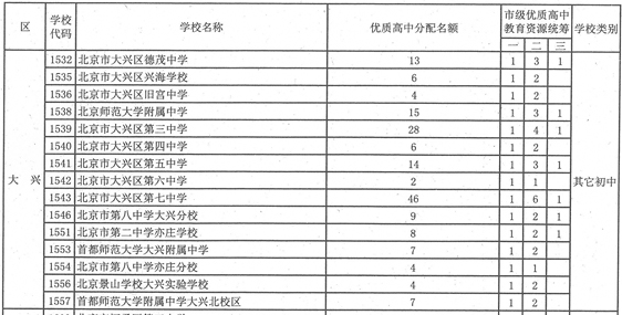 大兴区2017个初中学校名额分配和市级统筹分配名额汇总已出,共涉及首师大大兴附中、八中亦庄分校、兴华中学、北师大附中等36所中学。