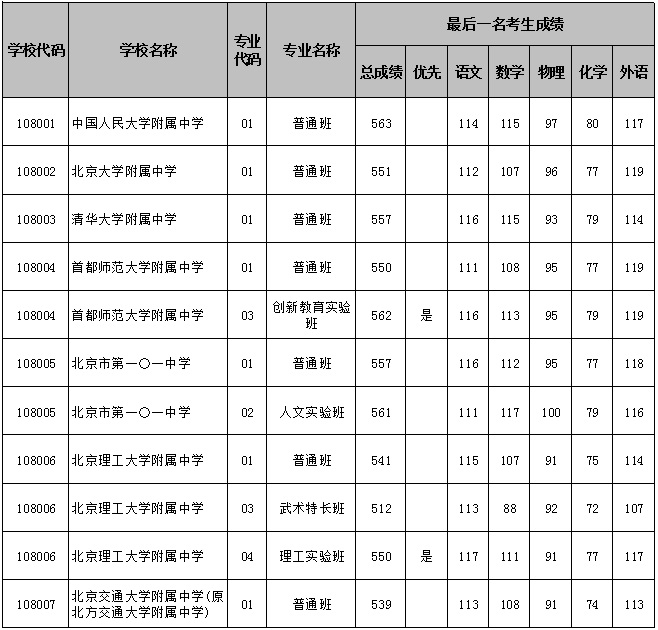 海淀区各校2017年中招录取分数已经公布,其中人大附中录取分数线为563、清华附中557、北大附中551、首师大附550、十一学校555、101中学557,具体请看本文。
