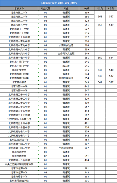 2017东城区部分学校中招录取分数如下,涉及到的学校包括北京二中、北京五中、景山学校、东直门中学、汇文中学等等。