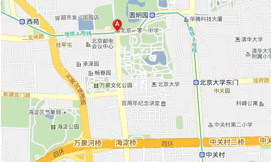 (1)乘坐地铁4号线:在圆明园站下车,从圆明园站A口(西北口)出站,向西步行500米,丁字路口红绿灯处即到。