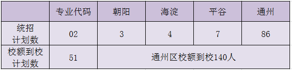 北京理工大学附属中学通州校区与北京理工大学附属中学同一招生代码(108006),02专业,统招计划在《招生简章》85页,校额到校计划在50页。报考我校的学生,学籍属于通州区。中考成绩优异的学生有机会择优进入海淀本部。近几年,有30余名优秀学生高中阶段在海淀本部就读。