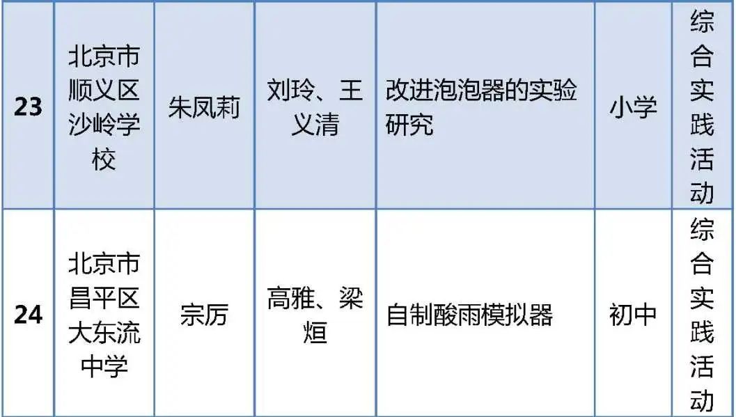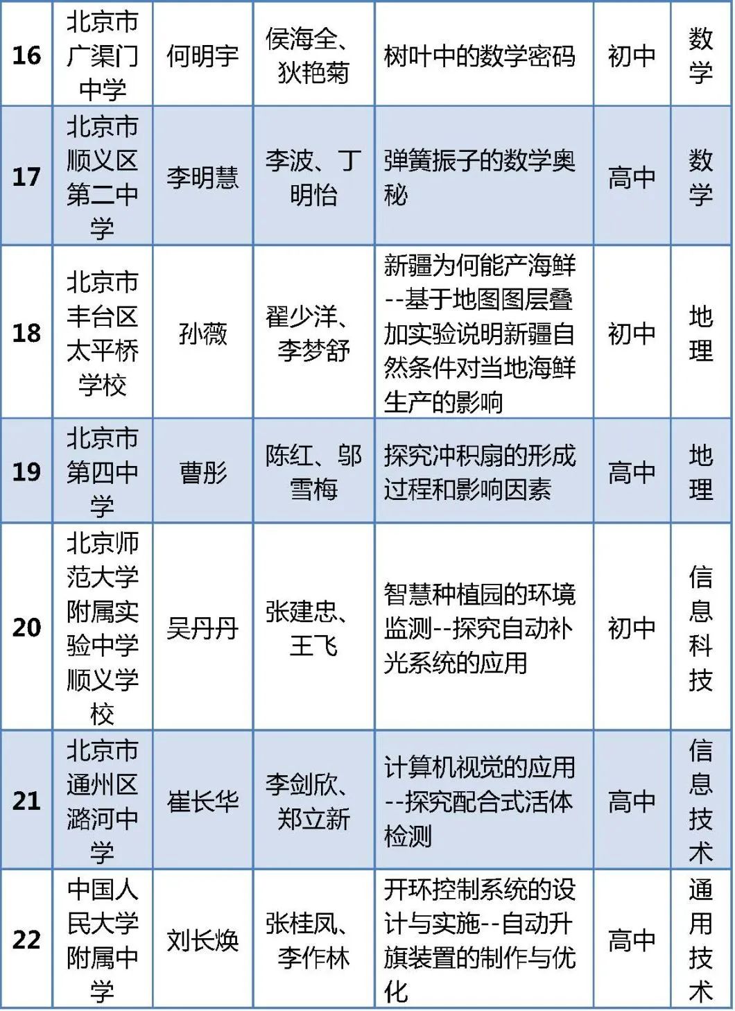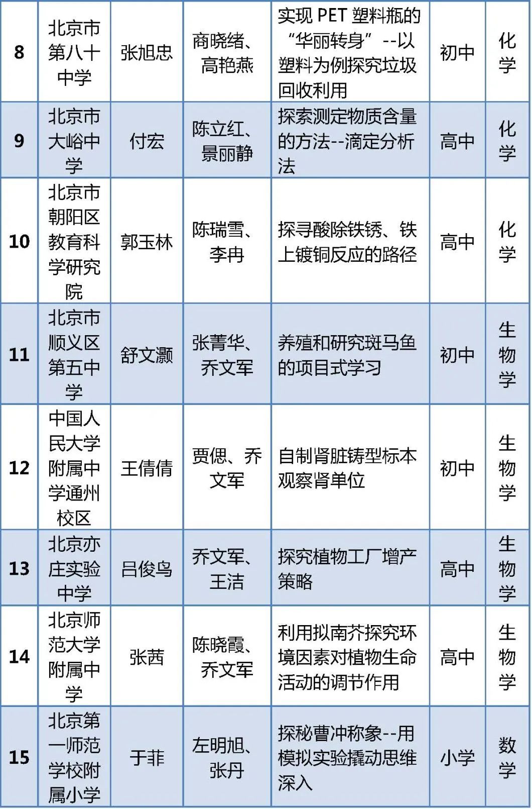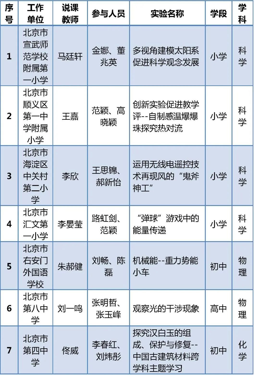 第十届全国中小学实验教学说课,活动现场展示案例名单(北京地区)