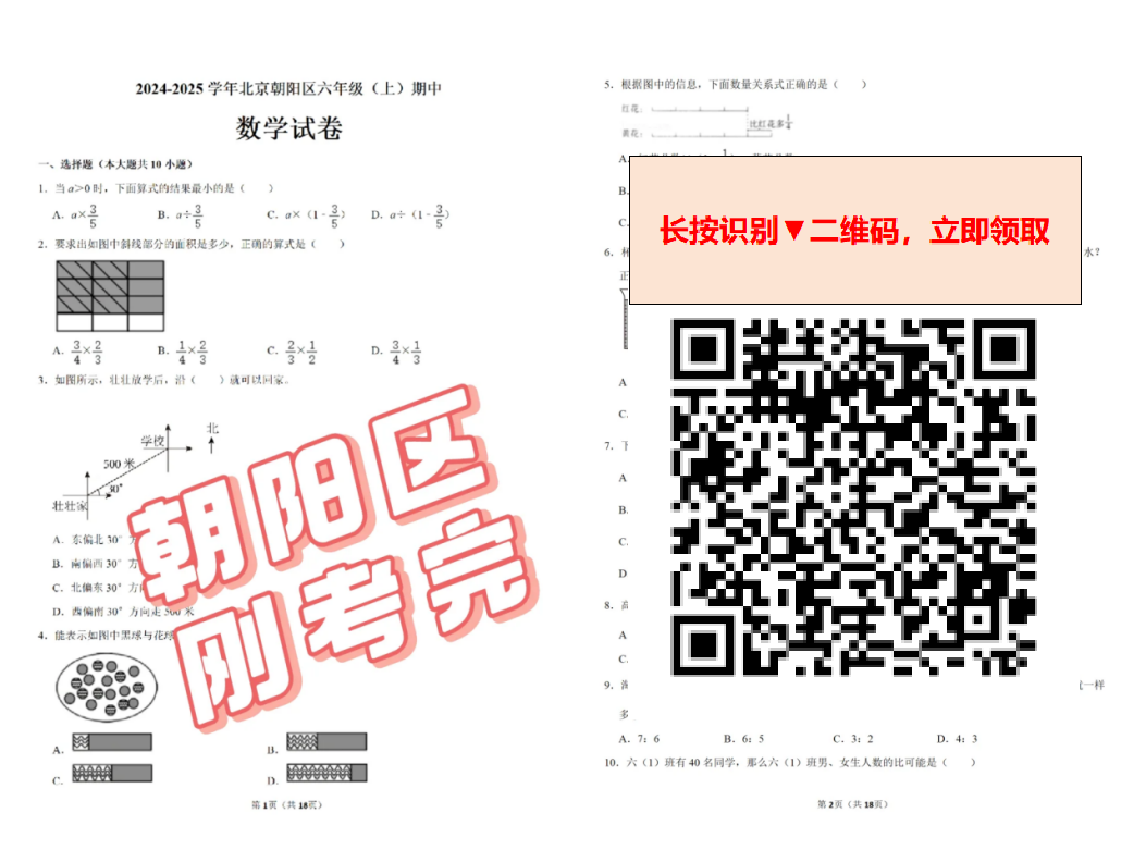 以下是北京各区1-6年级期中/期末试卷汇总↓