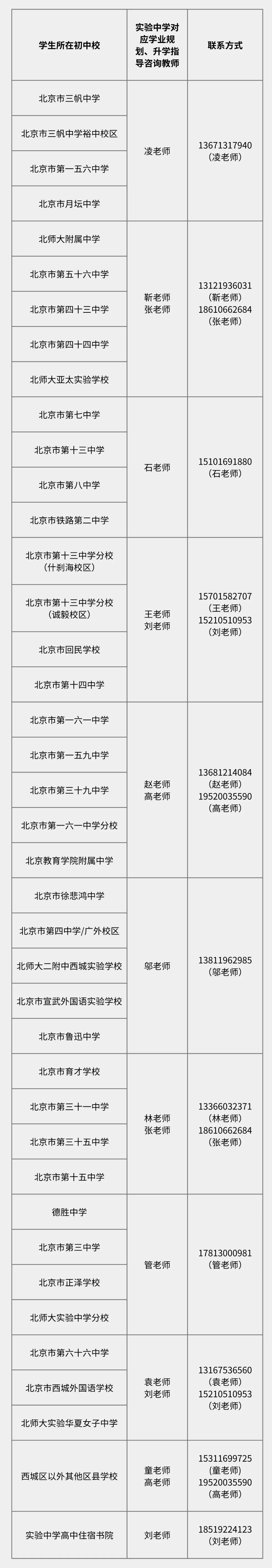 为方便大家更好地了解实验中学及其人才培养方案,现开通专项咨询,联系方式详见下表: