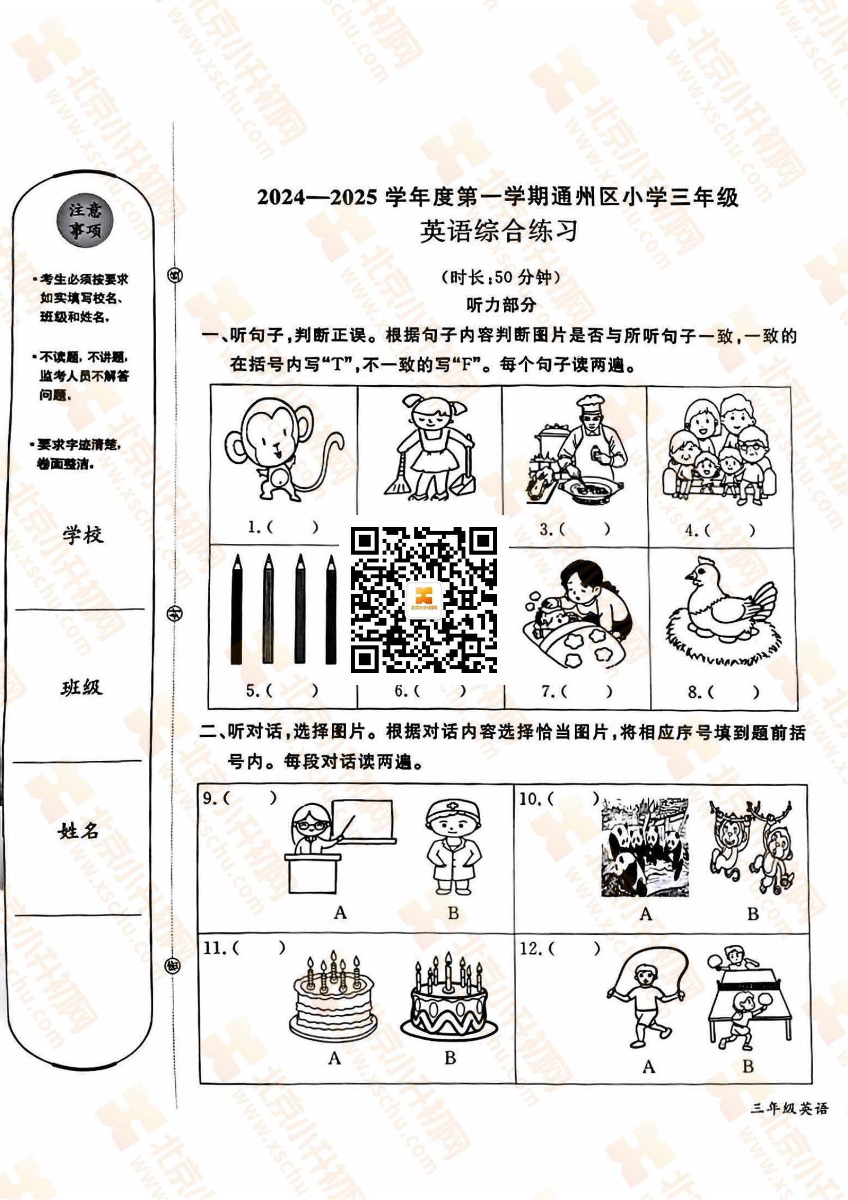 通州区小学3年级2024-2025学年第一学期英语期末试卷是什么?北京小升初网分享相关信息,供各位学生家长查看。