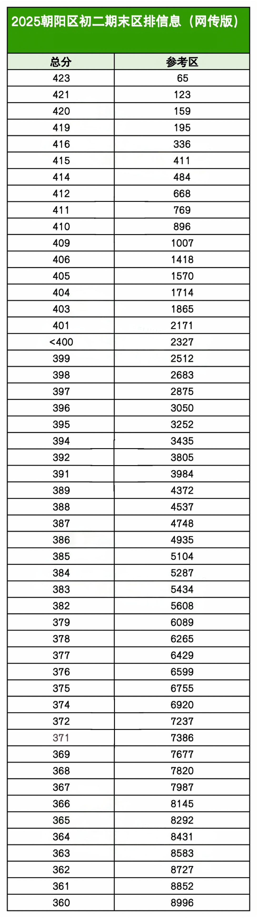 2024-2025学年北京朝阳区初二期末区排名(参考)