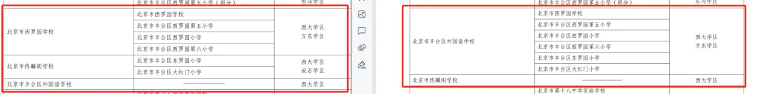 👇丰台区外国语学校合并西罗园学校、多校划片面向西大学区、方东学区;