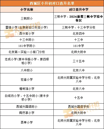 西城区小学对口直升初中名单、比例来了,2026小升初及低年级家长随北京小升初网来看详情!