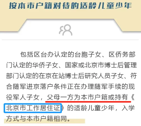 非京籍孩子想要参加2026年北京小升初,需审核四证,但是如果父母一方持有北京工作居住证,审核通过后即可按京籍对待入学,无需准备非京籍四证材料!