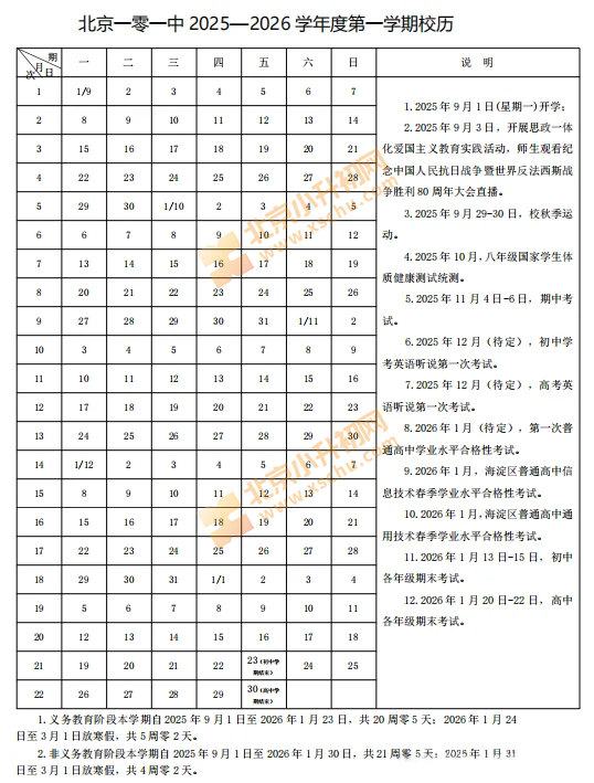 北京101中学2025-2026学年第一学期义务教育阶段自2025年9月1日至2026年1月23日,共20周零5天,2026年1月24日至3月1日放寒假,共5周零2天。.png)
