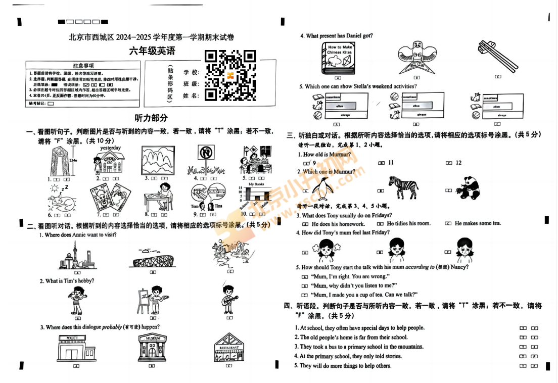 2025-2026学年(上)西城区小学六年级英语期末试题预计在2026年1月出炉!家长可先下载去年期末试题,练习提升!新试卷公布后将更新在本页面,建议(Ctrl+D)收藏本页面!