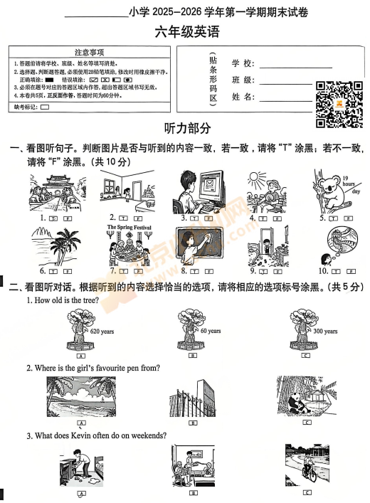 西城区学年第一学期小学六年级英语期末试卷及答案什么时候出?考哪些内容?.png)
