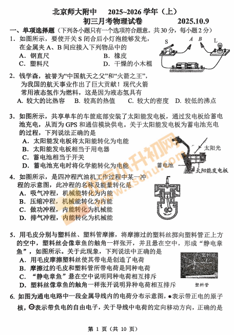 2025北京北师大附中初三10月月考物理试卷及答案已发布,点击本文可查看、下载完整版试卷及答案。2025北京北师大附中初三10月月考物理试卷及答案发布,北京小升初网分享,供大家可下载查看!各区初中校月考试卷可点击下方↓图片,打包下载。