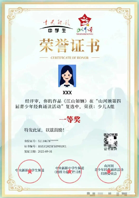 第四届山河颂青少年经典诵读展示活动进行中,中小学生皆可报名,活动详情如下: