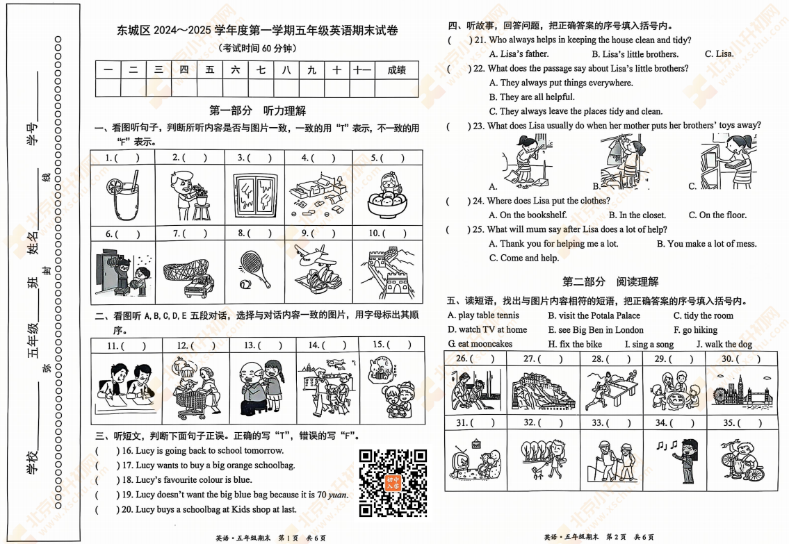 2025-2026学年(上)东城区小学五年级英语期末试题预计在2026年1月出炉!家长可先下载去年期末试题,练习提升!新试卷公布后将更新在本页面,建议(Ctrl+D)收藏本页面!