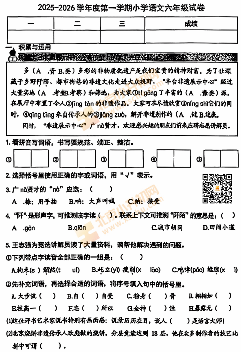 2025-2026学年(上)丰台区小学六年级语文期末试题已出炉!下载完整版试卷请点击文末pdf文件!或点击下方图片↓打包下载2026年北京各区小学期末试卷!