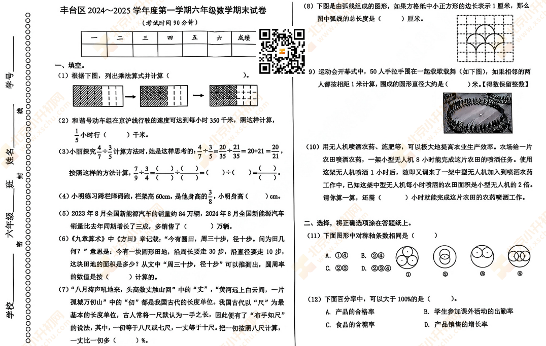 2025-2026学年(上)丰台区小学六年级数学期末试题预计在2026年1月出炉!家长可先下载去年期末试题,练习提升!新试卷公布后将更新在本页面,建议(Ctrl+D)收藏本页面!