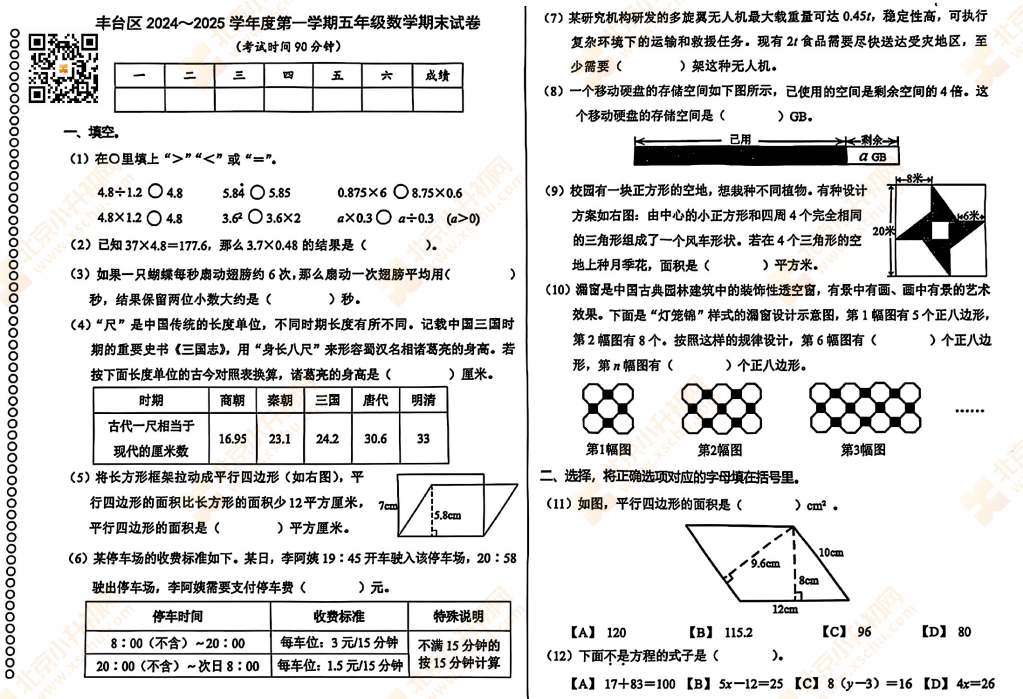 2025-2026学年(上)丰台区小学五年级数学期末试题预计在2026年1月出炉!家长可先下载去年期末试题,练习提升!新试卷公布后将更新在本页面,建议(Ctrl+D)收藏本页面!