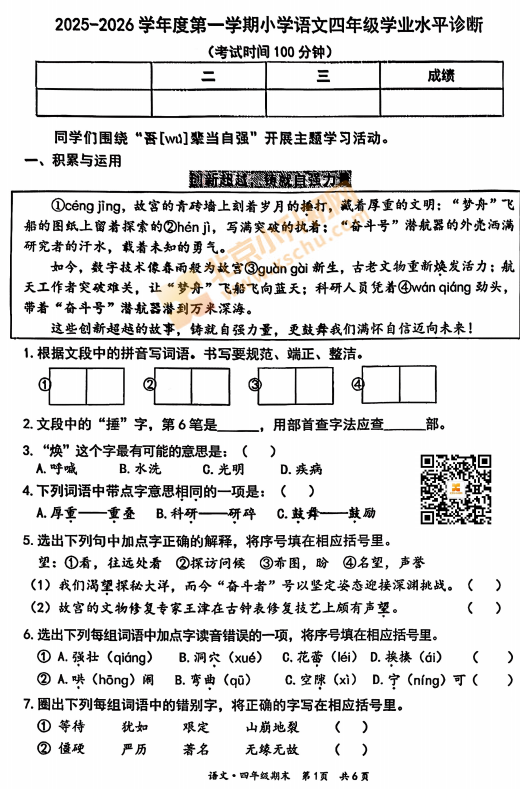2025-2026学年(上)丰台区小学四年级语文期末试题及答案已出炉!下载完整版试卷请点击文末pdf文件!或点击下方图片打包下载2026年北京各区小学期末试卷!