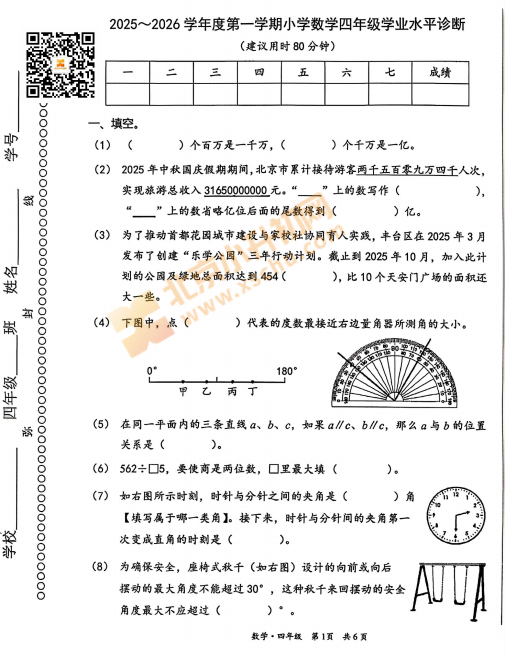 2025-2026学年(上)丰台区小学四年级数学期末试题及答案已出炉!下载完整版试卷请点击文末pdf文件!或点击下方图片↓打包下载2026年北京各区小学期末试卷!