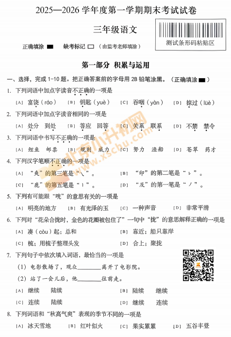2025-2026学年(上)房山区小学三年级语文期末试题已出炉!下载完整版试卷请点击文末pdf文件!或点击下方图片↓打包下载2026年北京各区小学期末试卷!