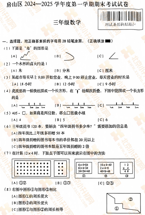 2025-2026学年(上)房山区小学三年级数学期末试题预计在2026年1月出炉!家长可先下载去年期末试题,练习提升!新试卷公布后将更新在本页面,建议(Ctrl+D)收藏本页面!