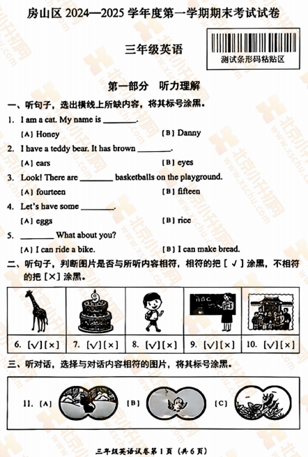 2025-2026学年(上)房山区小学三年级英语期末试题预计在2026年1月出炉!家长可先下载去年期末试题,练习提升!新试卷公布后将更新在本页面,建议(Ctrl+D)收藏本页面!