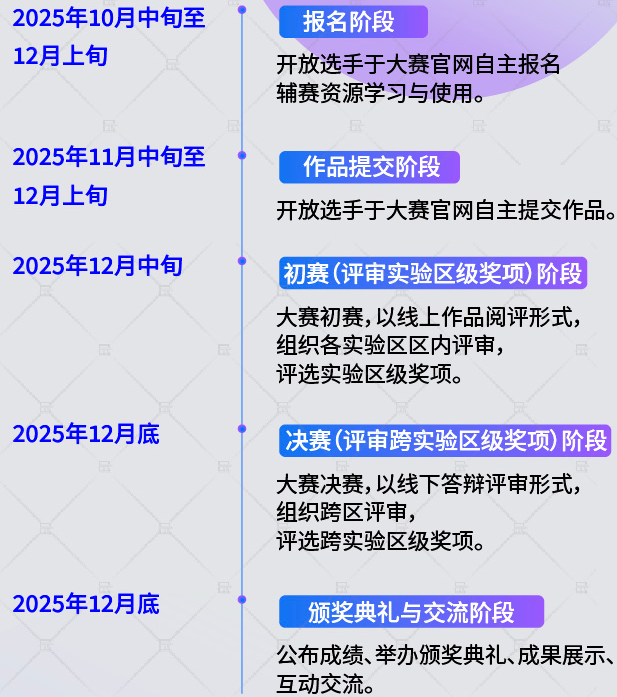 | “智能算法挑战”分项 | 2025年10月17日-2025年12月3日 | 2025年11月11日-2025年12月9日 | 初中组、高中组 | 点击查看 |