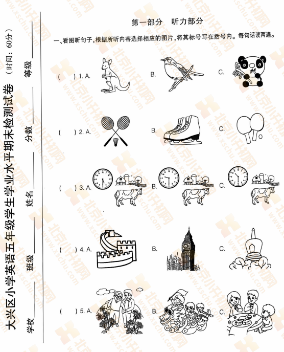 2025-2026学年(上)大兴区小学五年级英语期末试题预计在2026年1月出炉!家长可先下载去年期末试题,练习提升!新试卷公布后将更新在本页面,建议(Ctrl+D)收藏本页面!