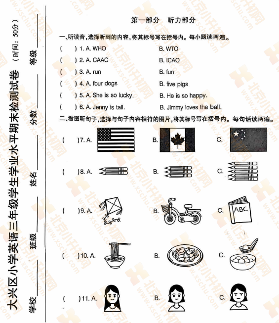2025-2026学年(上)大兴区小学三年级英语期末试题预计在2026年1月出炉!家长可先下载去年期末试题,练习提升!新试卷公布后将更新在本页面,建议(Ctrl+D)收藏本页面!