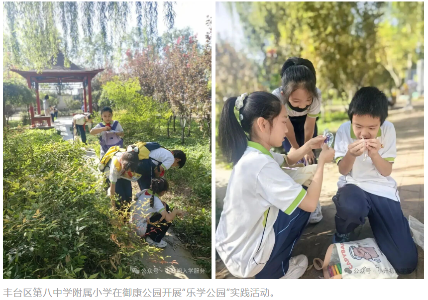 丰台区第八中学附属小学在御康公园开展“乐学公园”实践活动。