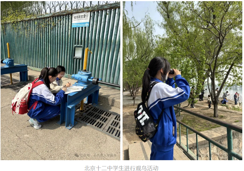 北京十二中学生进行观鸟活动