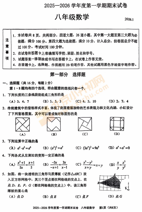 2025-2026学年(上)西城区初二期末数学试卷及答案已出炉!下载完整版试卷请点击文末pdf文件!或点击下方图片↓打包下载2026年北京各区初中期末试卷!