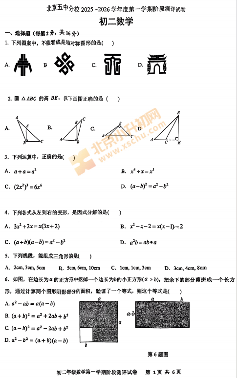 2025-2026学年第一学期北京五中分校初二期中数学试卷及答案什么时候出?考哪些内容?如何下载?