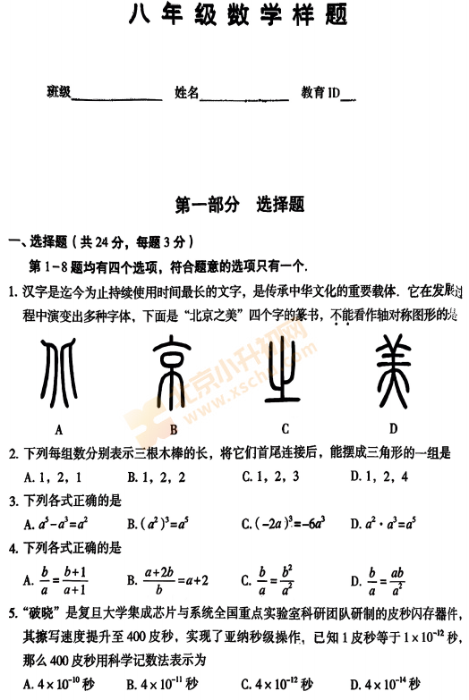 丰台区2025-2026学年第一学期初二期末数学试卷及答案什么时候出?考哪些内容?如何下载?