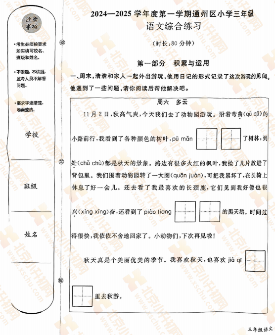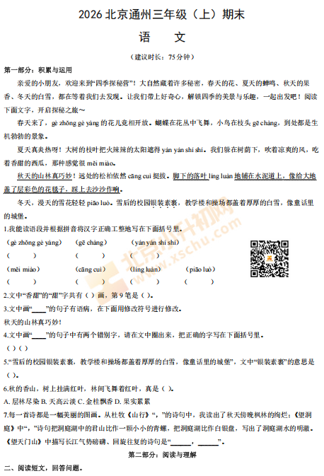 2025-2026学年第一学期通州区小学三年级语文期末试卷及答案什么时候出?考哪些内容?如何下载?.png)