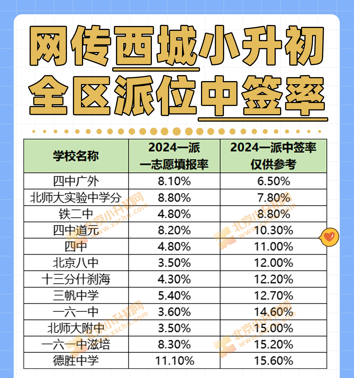 西城小升初全区派位学校中签率汇总,2025西城小升初家长参考
