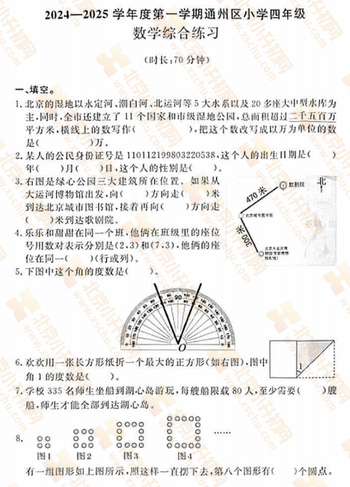 2025-2026学年(上)通州区小学四年级数学期末试题预计在2026年1月出炉!家长可先下载去年期末试题,练习提升!新试卷公布后将更新在本页面,建议(Ctrl+D)收藏本页面!