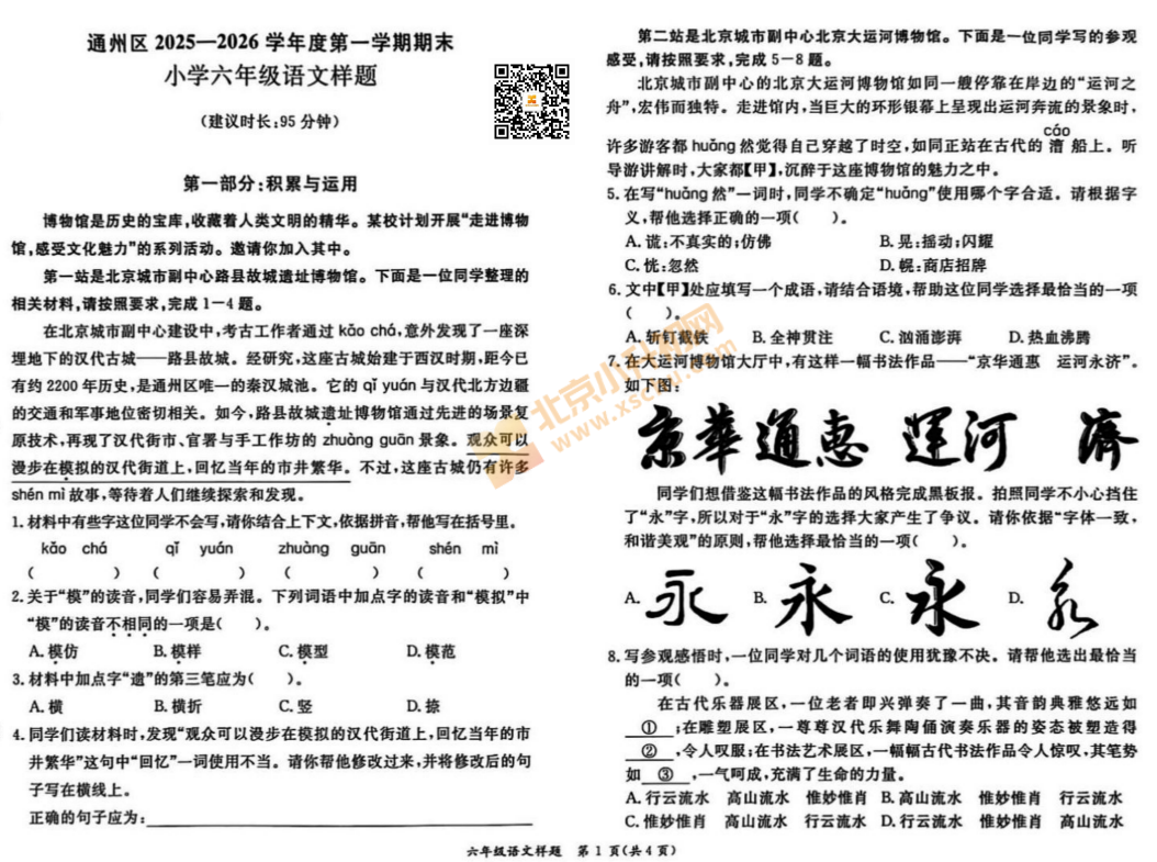 2025-2026学年第一学期通州区小学六年级语文期末试卷及答案什么时候出?考哪些内容?如何下载?.png)