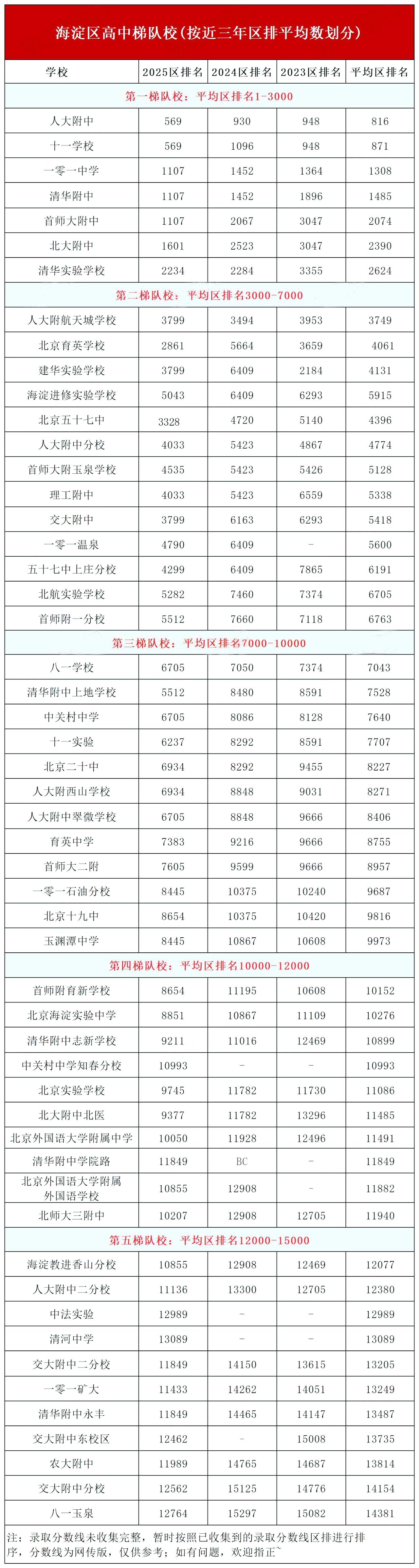 海淀高中学校排名情况如何?2026年海淀小升初家长、中考学生如何选择高中校?北京小升初网根据2023-2025年区排名平均分综合整理,仅供参考!